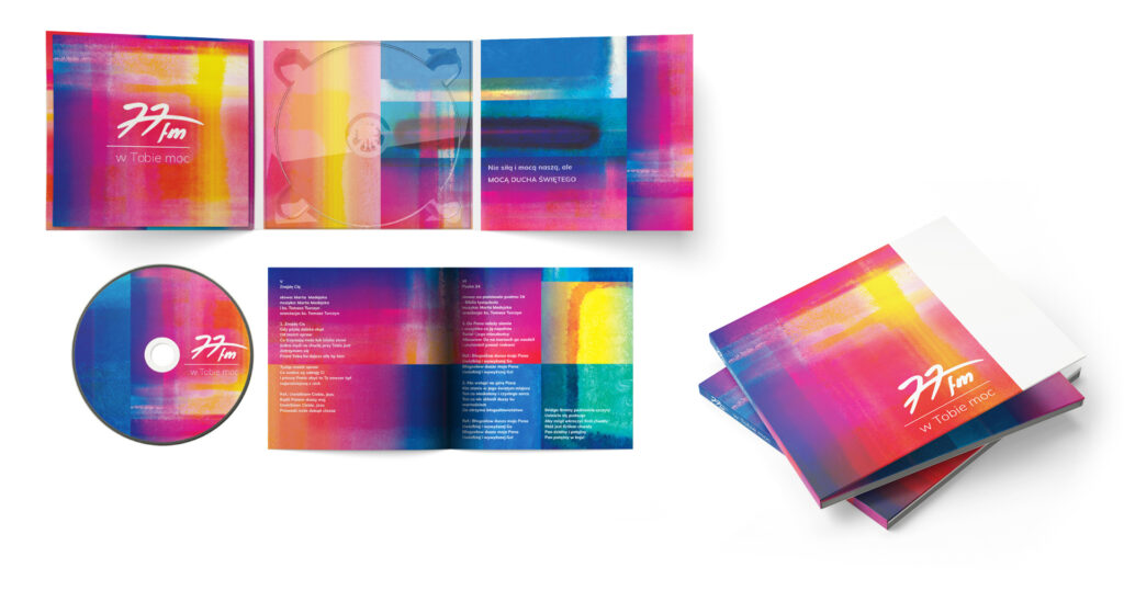 Kompleksowy projekt oprawy graficznej dla zespołu 77fm obejmował projekt logotypu oraz projekt albumu „W Tobie moc”. Estetyka digipak’u odzwierciedla radosny charakter muzyki. Rozwibrowane malarskie tła i sugestywna „gra światłem” nawiązuje do pełnego nadziei przekazu muzyki.