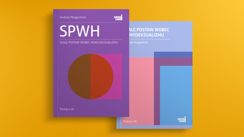 Dwie wersje okładki do naukowej książki pt. „Skale postaw wobec homoseksualizmu”. Akademicki charakter wydawnictwa podkreślony jest za pomocą geometrii (w tym przypadku szczególnie inspirowanej szkołą Bauhausu).