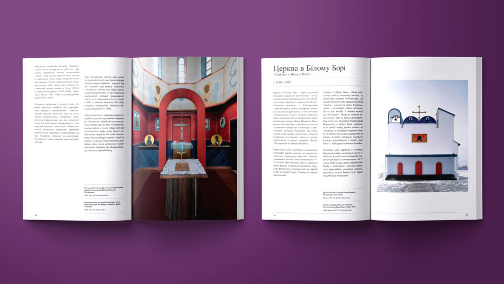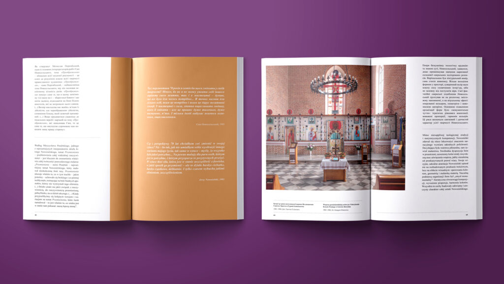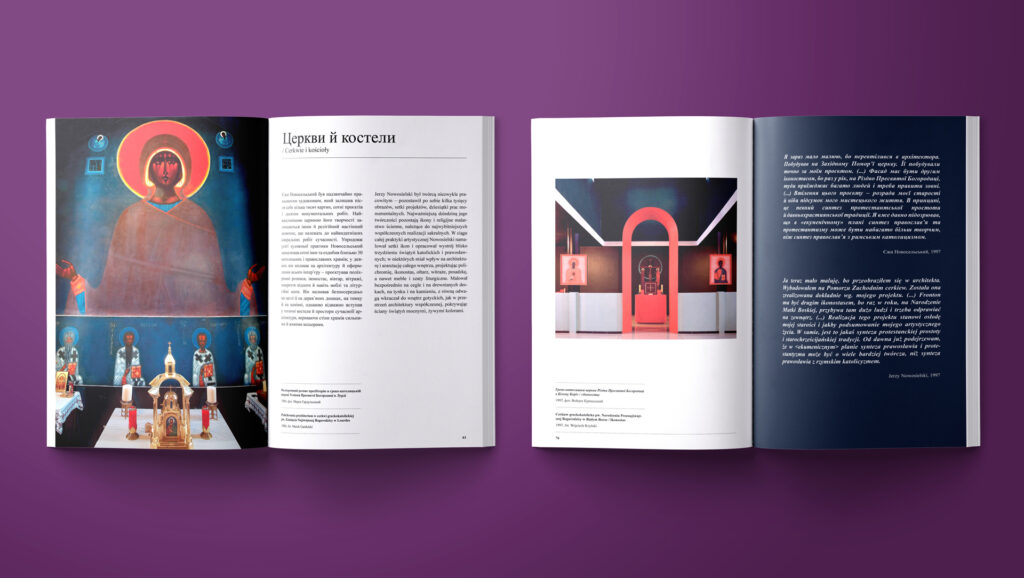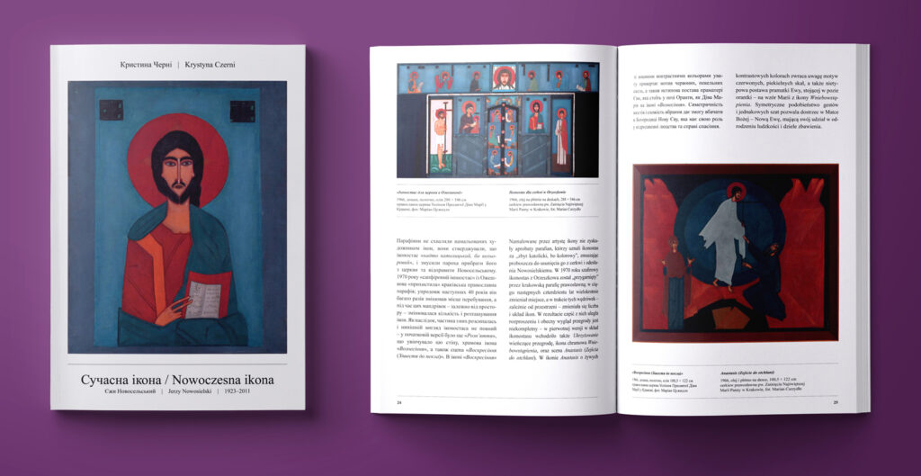 Książka autorstwa Krystyny Czerni „Nowoczesna ikona. Jerzy Nowosielski” przygotowana została na okoliczność wystawy twórczości artysty. Layout został zaprojektowany w przejrzystej estetyce, aby nie konkurować z reprodukcjami dzieł, lecz uwypuklać ich charakter.